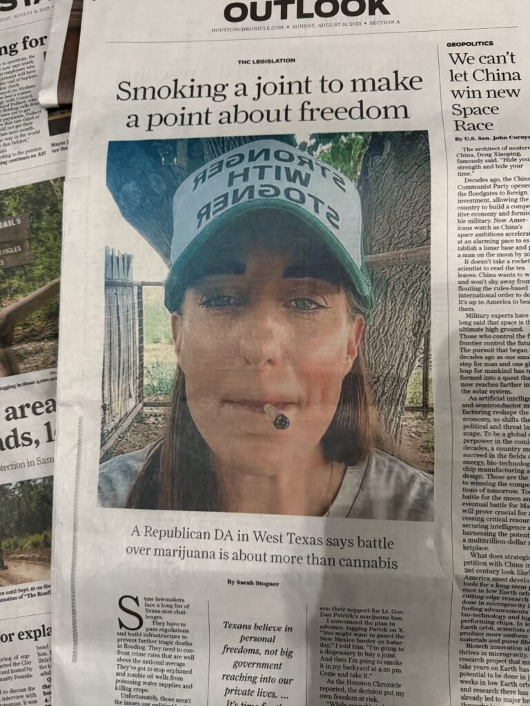 September I’ll remember A love once new has now grown old Is from “April Come She Will” by Paul Simon. _____ From the Don’t Bogart that Joint, My Friend Department, I have to hand it to Evan Mintz for making the call to put GOP West Texas DA Sarah Stogner smoking a joint on the…